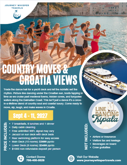 Spend your days island hopping through turquoise waters and exploring medieval seaside towns. Spend your evenings line dancing on deck as the sun sets over the sea.